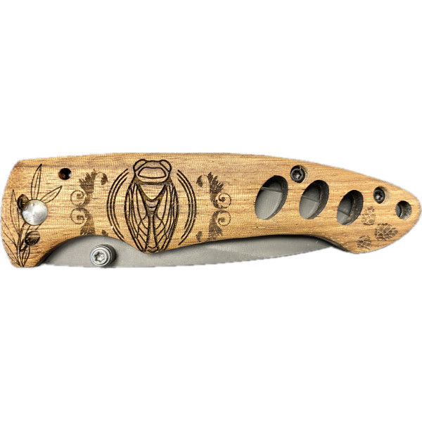 Couteau manche bois - longueur ouvert : 16,6 cm lame façon titane 420 SS - clip ceinture bois : Zébra wood